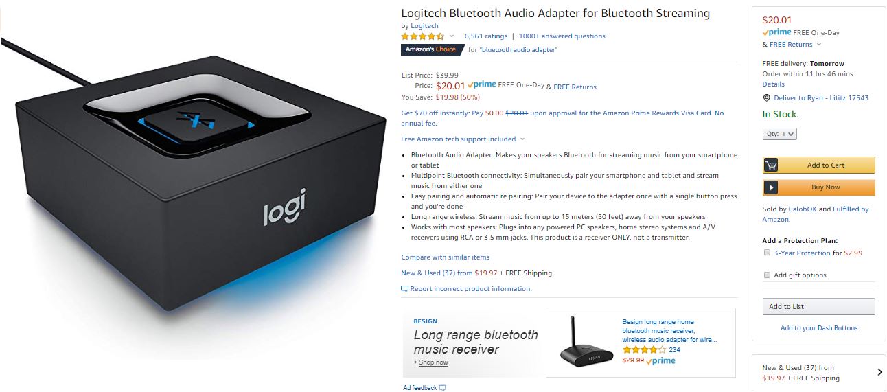 Logitech Bluetooth Audio Adapter For Wireless Streaming Dell Usa